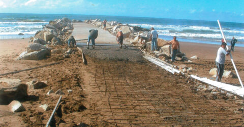 En el año 2004 comenzó la construcción de la primera escollera con el apoyo del personal a cargo de Santos y Juan Antonio Gutiérrez, con la coordinación del arquitecto Jorge Luis Hoyos. Esta obra contó con la aprobación del Dpto. de Obras Marítimas de la Provincia de Buenos Aires.